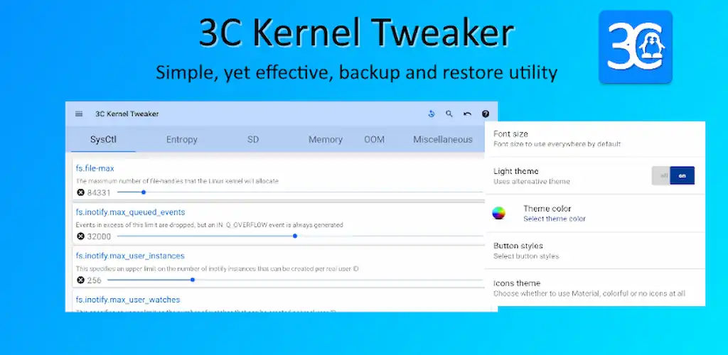 3C System Manager is a simple app to tweak various kernel settings on your rooted Android device. Requires technical knowledge of Linux and Android.