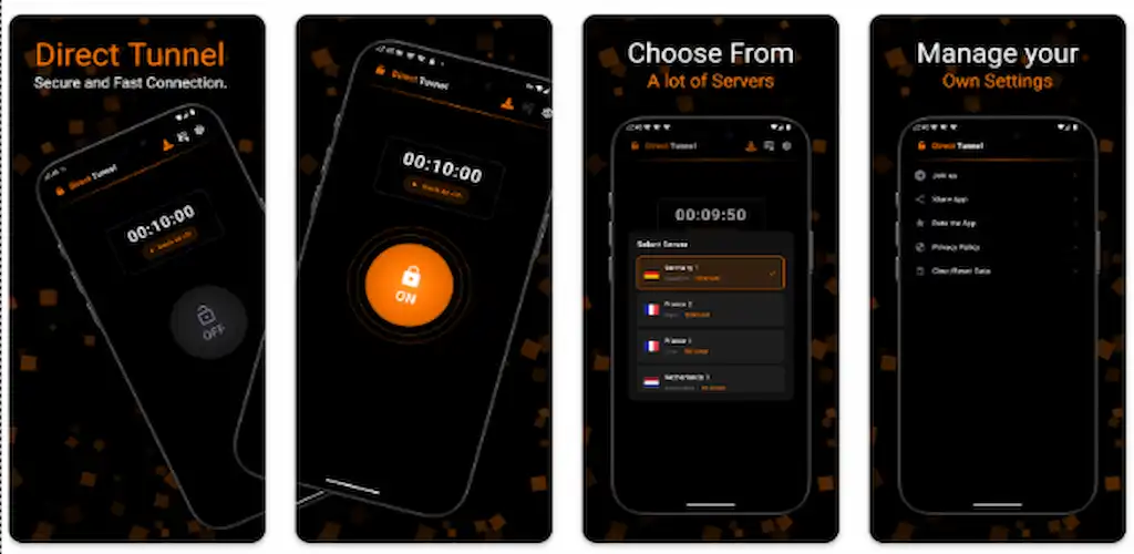 Direct Tunnel focuses on delivering a smooth user experience. You simply choose a server location and tap the connect button. The app automatically handles the technical configuration in the background.