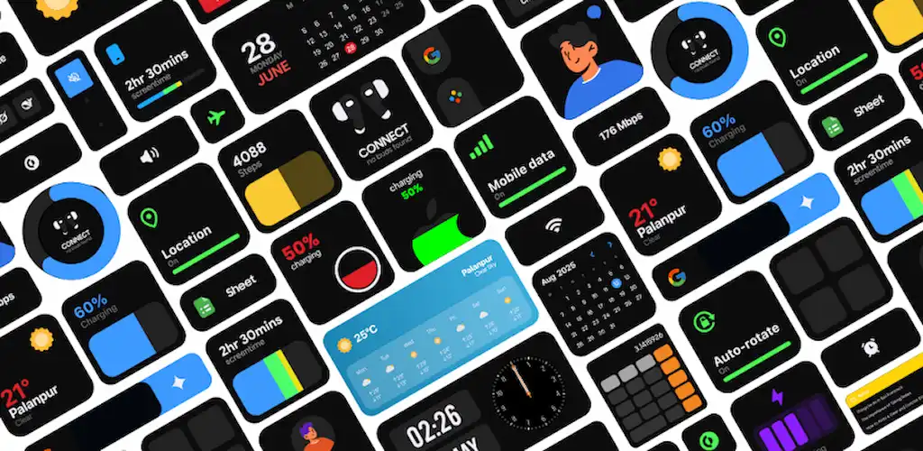 The app also enhances productivity by offering widgets for task management, including to-do lists, notes, and reminders. These tools allow you to organize your day directly from your home screen without opening multiple apps. Utility widgets give you instant access to essential functions like Wi-Fi, Bluetooth, flashlight, and calculator, making everyday actions faster and more convenient.