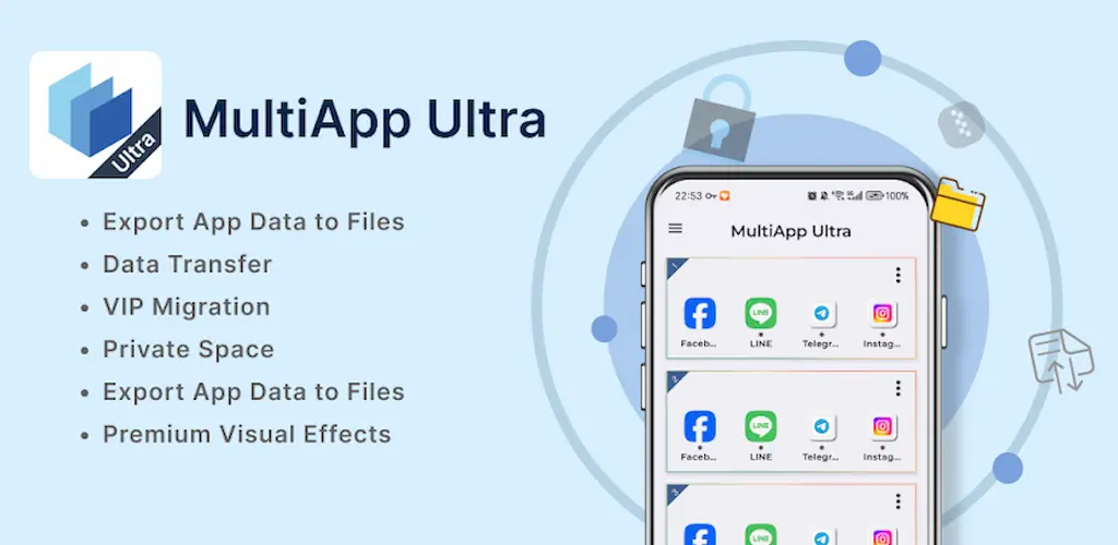 MultiApp Ultra introduces a range of exclusive features designed to elevate user experience. You can personalize the interface with customizable theme colors to match your preferences. The app allows you to export application data directly into files, giving you better control over backups and transfers. With its face-to-face data transfer feature, you can migrate data instantly using a single tap, while VIP migration ensures a smoother and more secure transition.