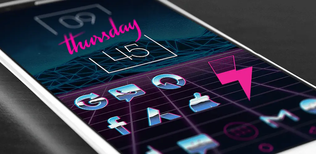 • Chrome, retro and neon icons work best with dark futuristic 80’s wallpapers.