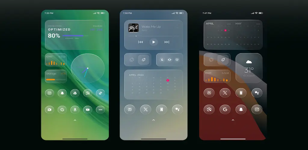 Glassy Widgets работает эффективно и обновляет все виджеты в режиме реального времени. Независимо от того, используете ли вы часы, прогноз погоды или элементы управления музыкой, все остается отзывчивым и точным. Вы можете настроить весь домашний экран всего за несколько минут и насладиться балансом стиля и функциональности, который действительно выделяется.